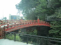 二荒山神社の建造物、木造朱塗りが美しい神橋です。