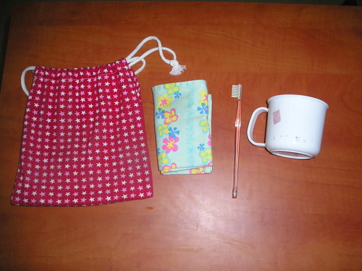 歯ブラシ・コップ・口ふき用タオル・(ミニタオル等)