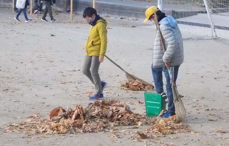 先日の「天声人語」に、「木々の色づきにも順番があって・・・紅葉のリレーのようだ」とありました。絵のように美しい景色は眺めていて飽きません。ただ紅葉(黄葉)は素敵ですが、そのあとの落葉への対応は大変です。掃いた後からはらはらと舞い落ちてキリがありません。校庭のプラタナスも例外ではありません。ましてやデカい!用務員さんが毎日のように悪戦苦闘中!