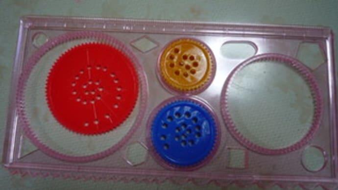ローリング・ルーラー…歯車の穴にペンを突っ込んでギヤ穴の中でグリグリと回すと不思議な模様が簡単に描けた。