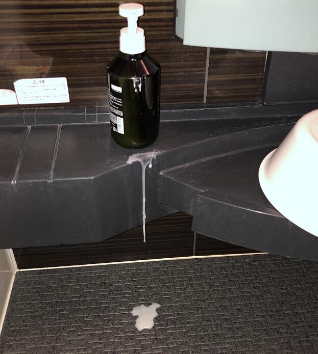 風呂からあがるときには風呂場の窓ガラスや壁に結露。自分が最後の時は、それをタオルである程度拭き取るのが習慣になっています。そして浴室乾燥を1時間半程度、スイッチ・オン!でも、ボディーソープとシャンプーの容器をそのまま浴室の置きっぱなしにすると、温度と圧力の関係か、なぜか翌朝の床が写真のとおり!固まってしまって掃除が大変であると同時に、無駄にしてしまうことに。わかっていても忘れてしまうことが多くて、朝から怒られる始末。でも、氷柱(つらら)や氷瀑みたい。