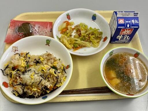 ひな祭り献立(3/3) 投稿日時 : 2022/03/03 市川小学校管理者 菜の花ごはん、野菜のツナ和え、すまし汁、桜餅、牛乳 五目ちらしの酢の塩梅がちょうどよい具合です。検食ではなかったので、菜の花が少なかったのが残念。すまし汁は鶏の出汁がよく出て優しい味わいです。