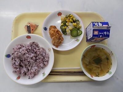 1月11日(木)献立 投稿日時 : 2024/01/11 市川小学校管理者 献立:黒米ごはん 七草汁 鶏の竜田揚げ かぶのサラダ 黒豆 牛乳 1月7日は「人日の節句」で、七草粥を食べる習慣があります。お正月にたくさんの料理を食べたおなかを休める意味もあってお粥にしたと言われています。給食ではお粥が出せないので、七草汁にしました。味わって食べてほしいです。 Tweet {{options.likeCount}} {{options.likeCount}} {{options.unlikeCount}} {{options.unlikeCount}} 0 コメント