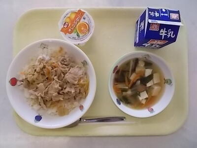 11月7日(火)献立 投稿日時 : 2023/11/07 市川小学校管理者 献立:豚丼 チンゲン菜のスープ オレンジゼリー 牛乳 豚丼は、豚肉を甘辛いたれで炒めたものをごはんに乗せた料理です。豚肉にはビタミンB1が多く含まれており、炭水化物がエネルギーになるのを助けます。炭水化物はごはんに含まれているため、豚肉とごはんは味だけでなく栄養素でも相性が良いです。千葉県は畜産も盛んで、今日の豚肉は千葉県産です。 Tweet {{options.likeCount}} {{options.likeCount}} {{options.unlikeCount}} {{options.unlikeCount}} 0 コメント