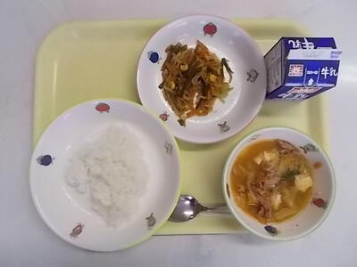 5月22日(月)献立 投稿日時 : 2023/05/22 市川小学校管理者 献立:ごはん チゲ鍋 茎わかめ炒め 牛乳 チゲは、キムチや魚介、肉、豆腐などを煮込んだ鍋料理です。今日の給食では豚肉と豆腐を入れて、キムチ味にしました。辛いものを食べると、食欲が増します。また、汗をかくことで体の巡りがよくなり、体の中のいらないものを出してくれます。今日もよく噛んで、しっかり食べましょう。 Tweet {{options.likeCount}} {{options.likeCount}} {{options.unlikeCount}} {{options.unlikeCount}} 0 コメント