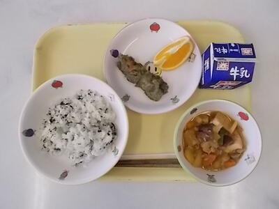 9月12日(火)献立 投稿日時 : 2023/09/12 市川小学校管理者 献立:わかめごはん 生揚げのみそ煮 ちくわの磯部揚げ オレンジ 牛乳 本「窓ぎわのトットちゃん」には、お弁当を食べるシーンで「海のもの」と「山のもの」という言葉が出てきます。海でとれるものと山(陸)でとれるもの両方を食事に入れる考え方です。今日の給食でも両方出ているので、子供たちには「考えながら食べて。」と投げかけました。ご家庭でも話題にしてもらえればと思います。 Tweet {{options.likeCount}} {{options.likeCount}} {{options.unlikeCount}} {{options.unlikeCount}} 0 コメント