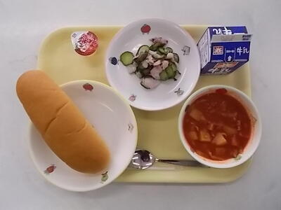 2月15日(木)献立 投稿日時 : 2024/02/15 市川小学校管理者 献立:コッペパン チリコンカン たこきゅうり ミニりんごゼリー 牛乳 チリコンカンはトマト味の煮込み料理です。肉や豆・いもも入っているので、栄養たっぷりです。この料理は、メキシコ由来のアメリカテキサス州の郷土料理と言われています。パンとの相性もいいので、交互に食べてもいいですね。今日もよく噛んで、しっかり食べてほしいです。 Tweet {{options.likeCount}} {{options.likeCount}} {{options.unlikeCount}} {{options.unlikeCount}} 0 コメント
