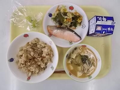 10月5日(木)献立 投稿日時 : 2023/10/05 市川小学校管理者 献立:まいたけごはん 鮭の塩焼き コーンとわかめの和えもの えのきのみそ汁 シャインマスカット 牛乳 今日は、秋の食べものを多く使った献立です。「食欲の秋」と言われるように、秋にはおいしい食べものがたくさんあります。鮭は、秋鮭を使いました。卵を産むために川に帰ってきている鮭で、脂が少ない特徴があります。今日もよく噛んでしっかり食べてほしいです。 Tweet {{options.likeCount}} {{options.likeCount}} {{options.unlikeCount}} {{options.unlikeCount}} 0 コメント