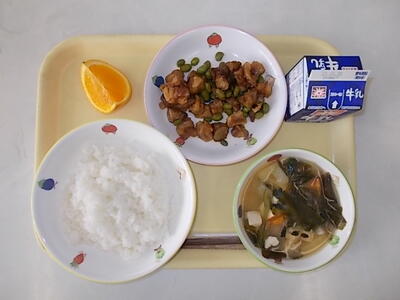 10月23日(月)献立 投稿日時 : 2023/10/23 市川小学校管理者 献立:ごはん チキンチキンごぼう 具だくさんみそ汁 オレンジ 牛乳 「チキンチキンごぼう」は、新メニューです。山口県の給食の定番メニューで、鶏肉とごぼうをそれぞれ衣をつけて油で揚げ、茹でた枝豆を加えて甘辛いたれで和えました。よく噛んで食べてほしいです。また、みそ汁には8種類の具が入っていて、栄養がいっぱいです。 Tweet {{options.likeCount}} {{options.likeCount}} {{options.unlikeCount}} {{options.unlikeCount}} 0 コメント