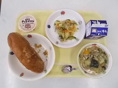 9月27日(水)献立 投稿日時 : 2023/09/27 市川小学校管理者 献立:きな粉揚げパン 焼肉サラダ 白菜スープ チョコプリン 牛乳 子供たちからリクエストの多い揚げパン、今回はきな粉味にしました。きな粉、グラニュー糖、塩を混ぜ合わせたものを揚げたパンに絡めて作っています。きな粉は、大豆を炒って粉にしています。今日もしっかり食べてほしいです。 Tweet {{options.likeCount}} {{options.likeCount}} {{options.unlikeCount}} {{options.unlikeCount}} 0 コメント