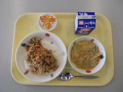 2月26日(月)献立 投稿日時 : 2024/02/26 市川小学校管理者 献立:そぼろ丼 ワンタンスープ オレンジゼリー 牛乳 そぼろ丼の具は、みそで味付けした豚ひき肉ともやし・小松菜・にんじんなどを合わせています。今回は卵を入れず、そぼろをメインにしました。ごはんの上に乗せて食べるか、具とごはんを混ぜて食べるかはお好みです。今日もよく味わって食べてほしいです。 Tweet {{options.likeCount}} {{options.likeCount}} {{options.unlikeCount}} {{options.unlikeCount}} 0 コメント