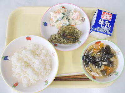 6月16日(金)献立 投稿日時 : 2023/06/16 編集長 献立:鯵ののり塩揚げ ポテトサラダ ご飯 わかめと油揚げのみそ汁 牛乳 昨日の「県民の日」にちなんで、今日は「千産千消献立」として、 千葉県産の鯵に、青のりを混ぜた片栗粉の衣をつけて揚げました。 山も海も川も平地もある、温暖で豊かな資源のある千葉県の恵みをいただきました。 Tweet {{options.likeCount}} {{options.likeCount}} {{options.unlikeCount}} {{options.unlikeCount}} 0 コメント