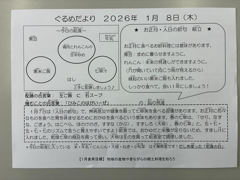 1月8日 今日の献立 投稿日時 : 01/08 編集長 今日から給食がはじまりました。 皆さんでおいしくいただきましょう。 給食室の皆さん、三学期もよろしくお願いいたします。 Tweet {{options.likeCount}} {{options.likeCount}} {{options.unlikeCount}} {{options.unlikeCount}} 0 コメント