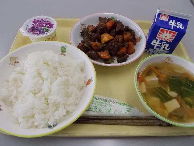 今日の給食は、ざっと数えて13品目くらいでしょうか。麻婆豆腐の片栗粉の割合、ゼリーの甘さ、寒天の量、どれをとってもちょうどよくて美味しい!