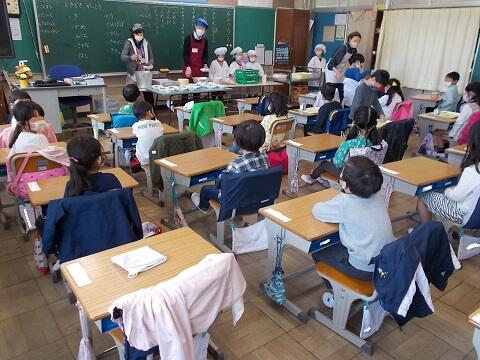 配膳には給食当番数人。器に盛るのは補助の教職員や担任です。しばらくはこの体制で…。
