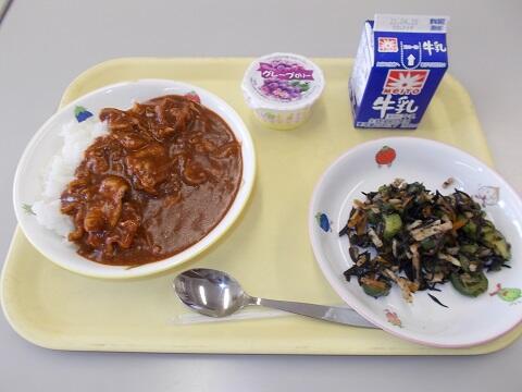 ハヤシライス、ひじきのサラダ、ゼリー、牛乳