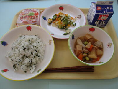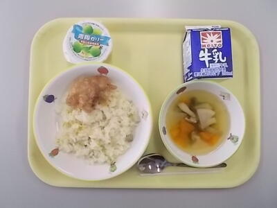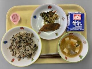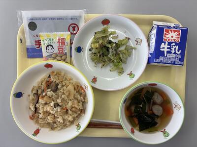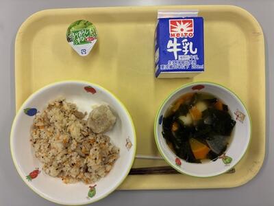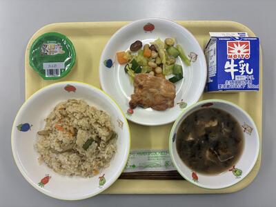 【米飯】・・・週4回程度実施 食育交流事業の取組の一つとして、千葉県産のお米で白飯、炊き込みご飯等を実施。9月と3月は福島県産のお米を使用。