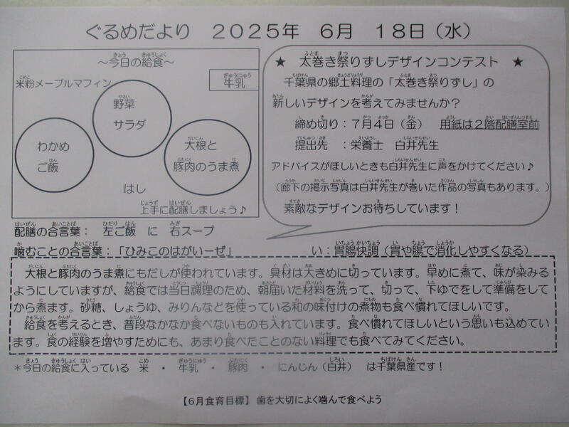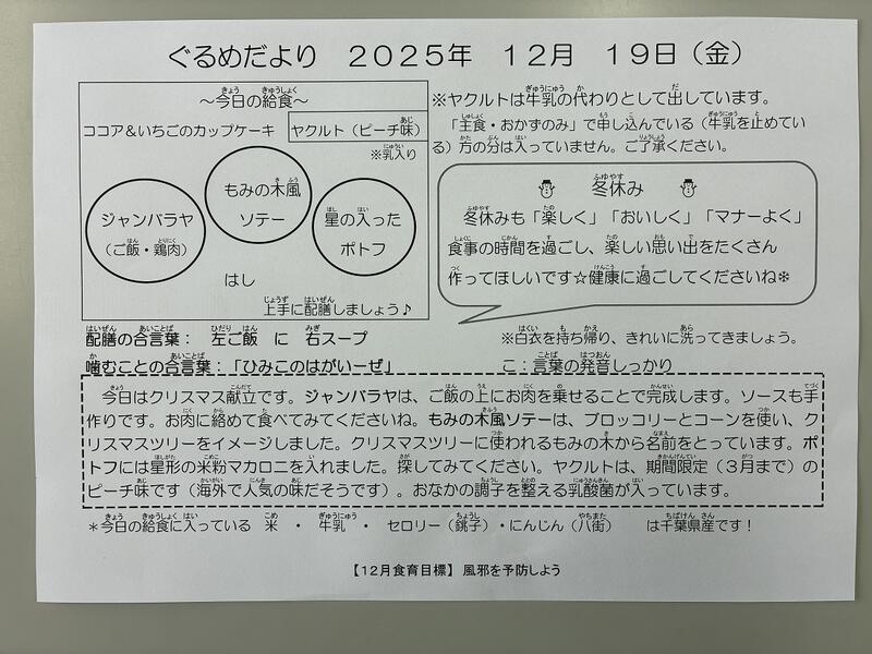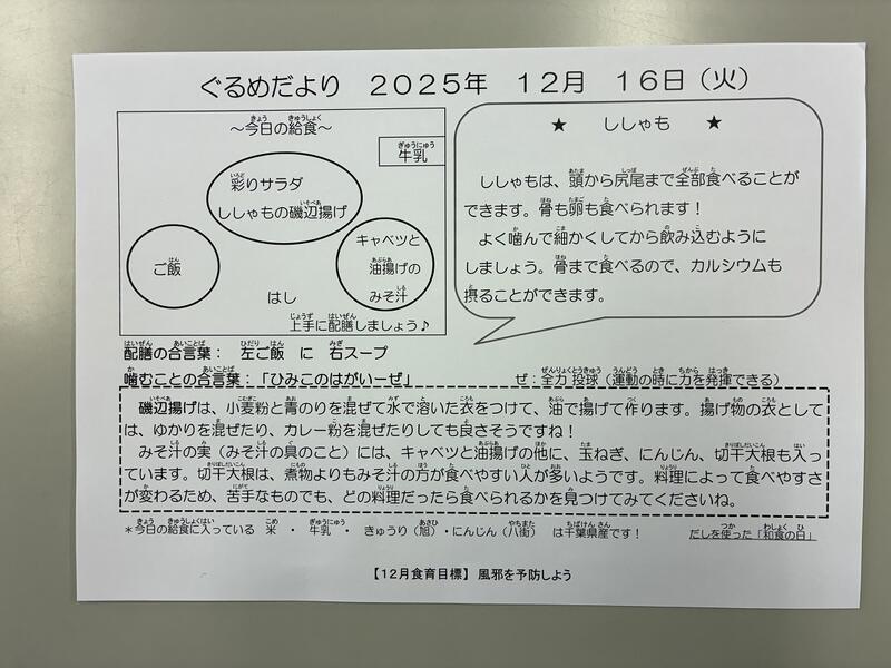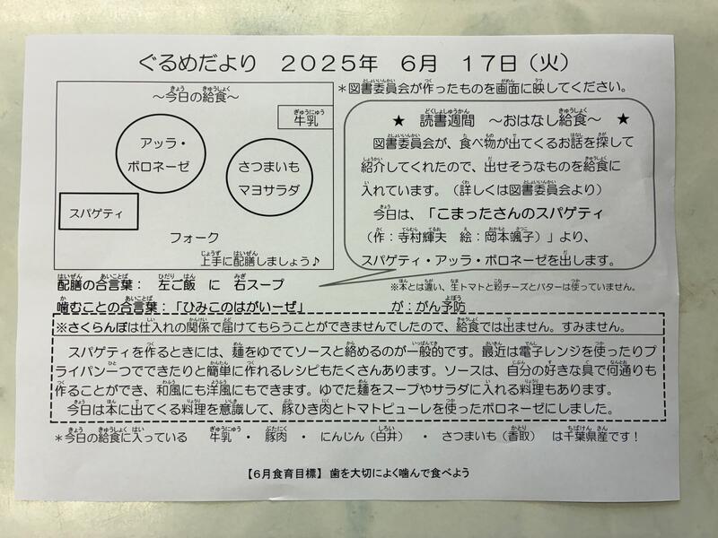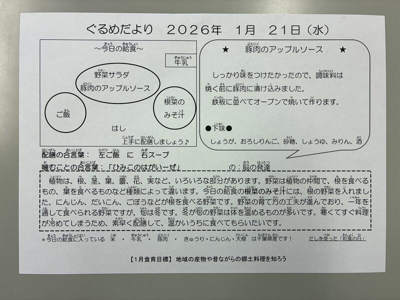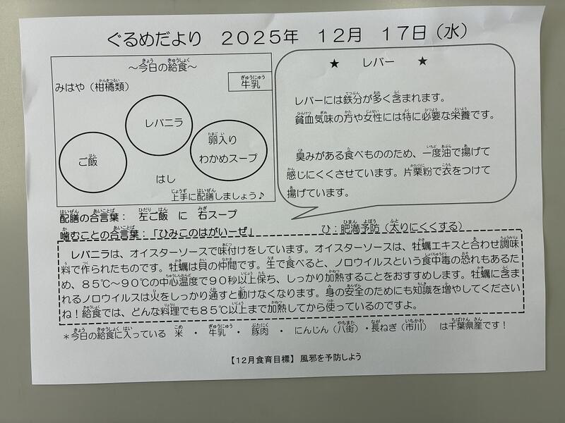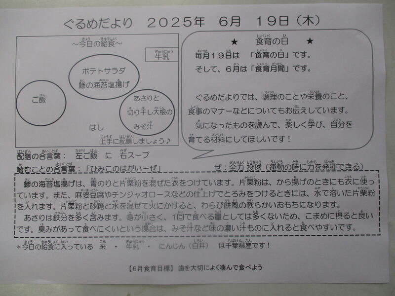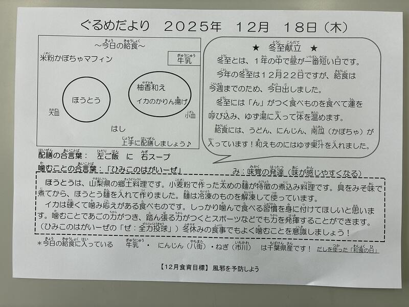 ☆ 給食室から pdfファイル(このページと同内容)はここから → 給食室から.pdf