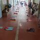 子供達はみんな積極的で、黒板をキレイにする子、流しを磨く子、壁や机を拭く子、とそれぞれ一生懸命に取り組んでいました。なかでも床の汚れ落としにはみんな気合い十分。終了時間も迫る中「まだやる」「もっとやりたい」となかなか立ち上がらず。最後は先生の声掛けで雑巾がけ。それも一列に並んで一斉にスタート!とまるでレースのようでした。