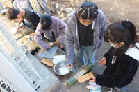 5、6時間目に、まずは雑草抜きから始め、その後ショベルやスコップを使って土を耕し、肥料を混ぜました。