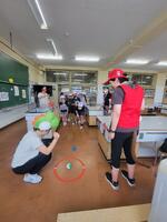 カナラボさん扮するドクターからコインと空気砲を交換してもらい、グループを引っ張ってくれた6年生が空気砲を発射!無事ピーチ姫を救出しフィナーレとなりました。