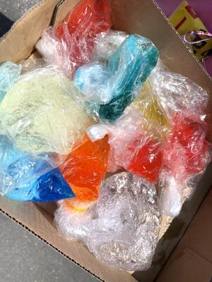 色とりどりのスライム。ビニール袋に材料を入れ手でもみもみして完成!