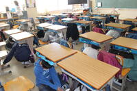 11月18日3校時に須和田の丘支援学校小学部さんと合同で、避難訓練を行いました。