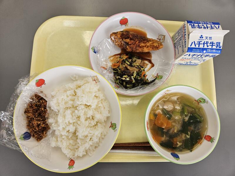今日の主菜(しゅさい)は、「鱈(たら)」というお魚(さかな)のフライです。たらは漢字(かんじ)で左(ひだり)に「魚」、右(みぎ)に「雪(ゆき)」と書(か)きます。名前(なまえ)のとおり、雪が降(ふ)り始(はじ)めるころからとれておいしくなる、雪のように白い魚です。