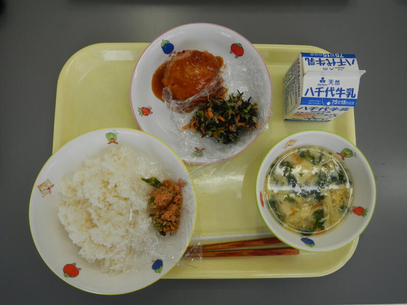 今日の給食(きゅうしょく)の副菜(ふくさい)は、ひじきのマリネです。
