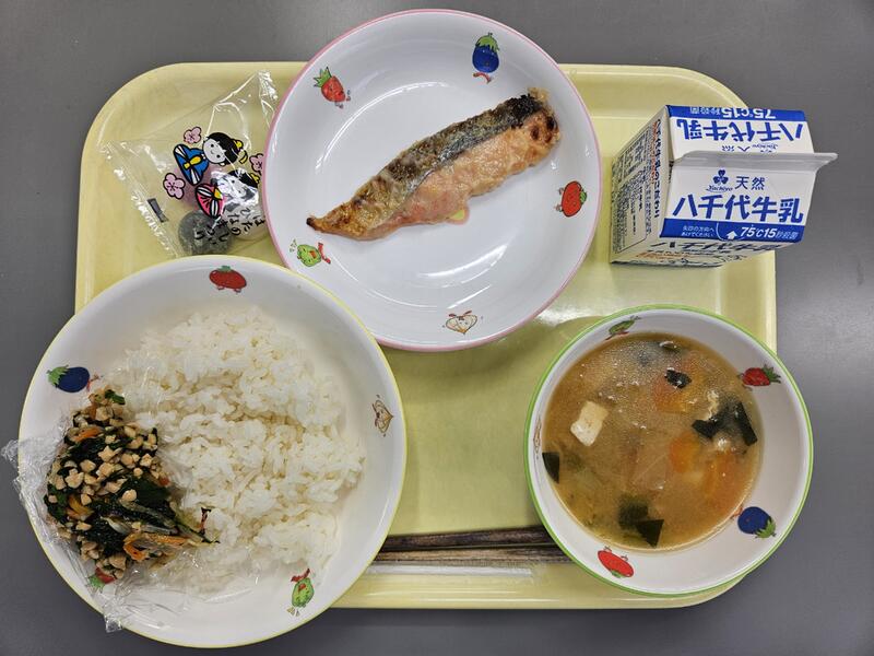 「西京焼き(さいきょうやき)」とは、白(しろ)いみそをお酒(さけ)やみりんでやわらかくのばして、魚(さかな)をそこに漬(つ)けておき、味(あじ)がしみてから焼(や)いた料理(りょうり)のことです。この料理は、お祝(いわ)いの時(とき)にも作(つく)ることが多(おお)いです。