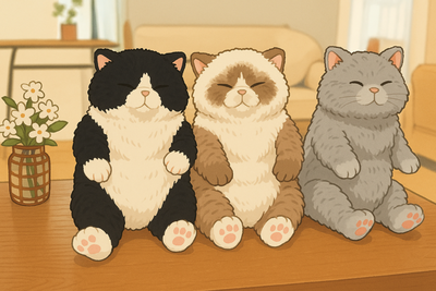 さて、独立した娘や息子の家族が色違いの猫のぬいぐるみを買って、会うたびにぬいぐるみミーティングが開催されます。といっても、ただ並べておくだけのこと。全員集合すれば5匹にもなります。そんな娘が、ぬいぐるみの前に煮干しを一匹入れた皿とマグカップを置いて写真を撮り、チャットGPTを使って絵本風に加工したものがラインで送られてきました。さらに、入力するとそれをもとにした物語までできてしまうというから驚き。人形劇『ひょっこりひょうたん島』世代の人間には、信じられない世界です。