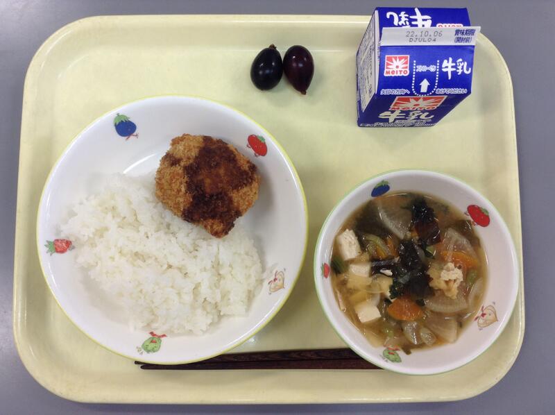 おからコロッケ わかめの味噌汁 巨峰