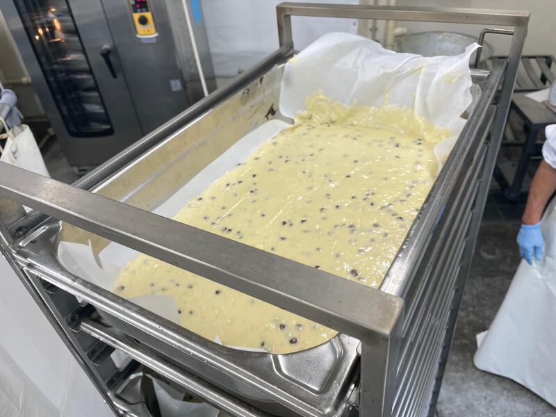 黒糖パン キャベツとコーンのサラダ マカロニのクリーム煮 梨のタルト