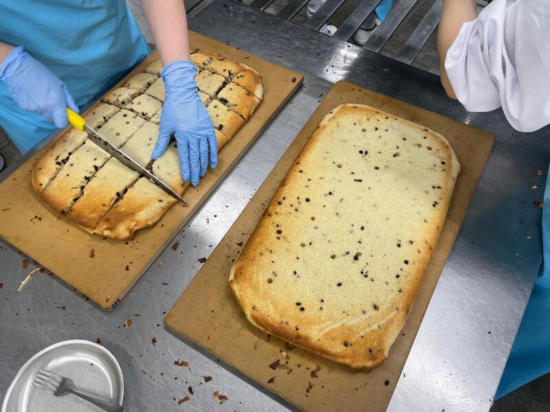 スパゲティボロネーゼ マセドアンサラダ バナナのケーキ