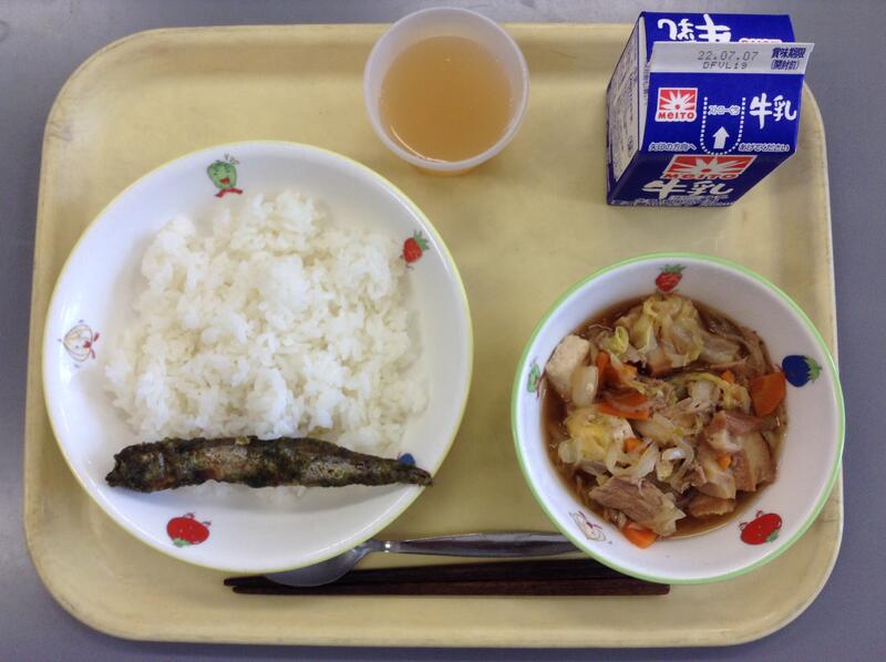 ししゃもの磯辺揚げ すき焼き風煮 ももゼリー
