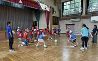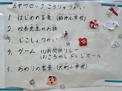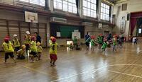 第五中ブロックの小学校3校の知的特別支援学級の子供たちが、大柏小の体育館に一堂に会して交流会を行いました。猛暑日の今日は、道中保冷材で冷やしたり水分補給したりしながら、汗びっしょりで到着。