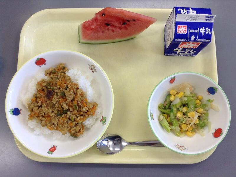 たこ飯 鯖のピリ辛焼き 豚汁 スイカ
