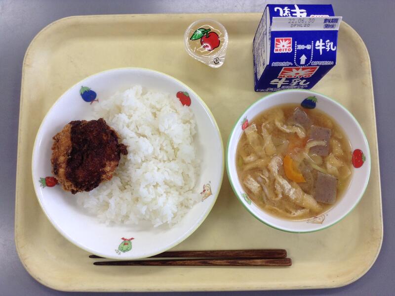 きなこ揚げパン マカロニサラダ 肉団子スープ りんご