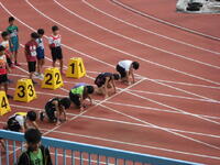 国府台陸上競技場で9時から競技開始です。5,6年男女100m、5,6男女走り幅跳び、6年男女走高跳が競い合う種目です。ベンチは100mスタート地点でしたので、写真も自ずとそればかり。