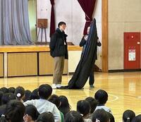 今日は芸術鑑賞教室。全校が体育館に一堂に会して、オペラありダンスありマジックありの『モモカ 真冬の大冒険』を鑑賞しました。子供たちも一緒になって披露する場面もありました。