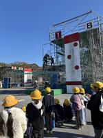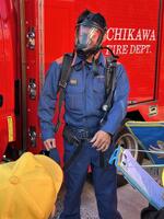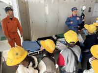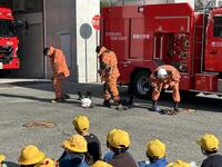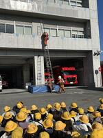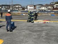 屋外の訓練場で、消防救助大会に向けて浦安市や四街道市からも集まった消防士が訓練していました。消防士を目指したいという子が12~13人もいます。今日の見学で考えた子が、その中の半分もいるなんて…。忖度?