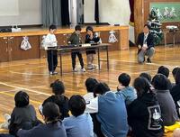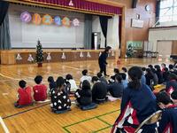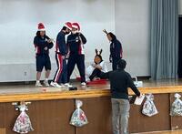 この時期恒例の五中B特学交流会に行ってきました。柏井小は、合奏や詩の朗読、歌を披露しました。最後は、そりに乗ったトナカイがサンタに引かれて登場し、プレゼントを配ってくれました。