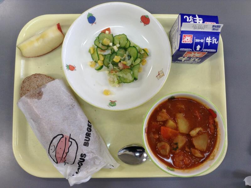 キャラメルシュガー揚げパン フレンチサラダ チキンのトマト煮 りんご