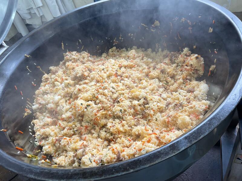 たこ飯 ちくわのゆかり揚げ ほうれん草のごま和え とん汁 牛乳寒天