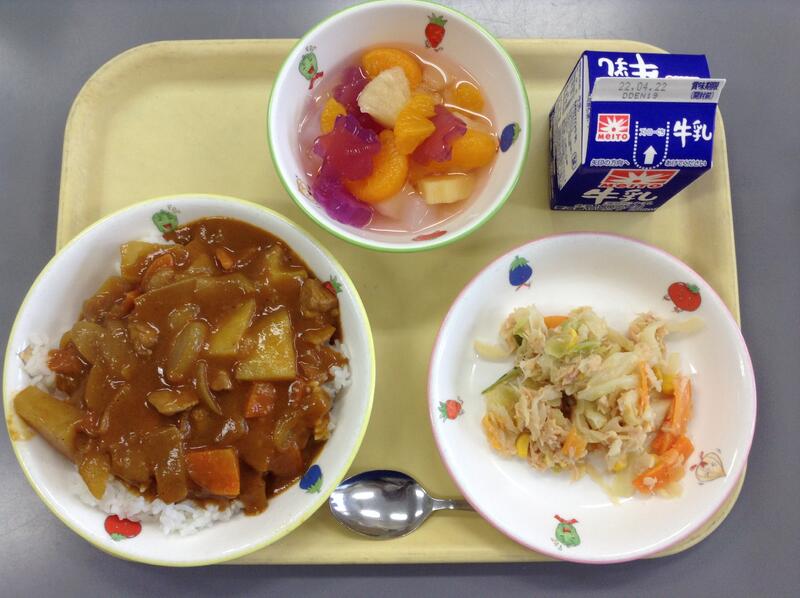 カレーライス 春キャベツのサラダ フルーツポンチ