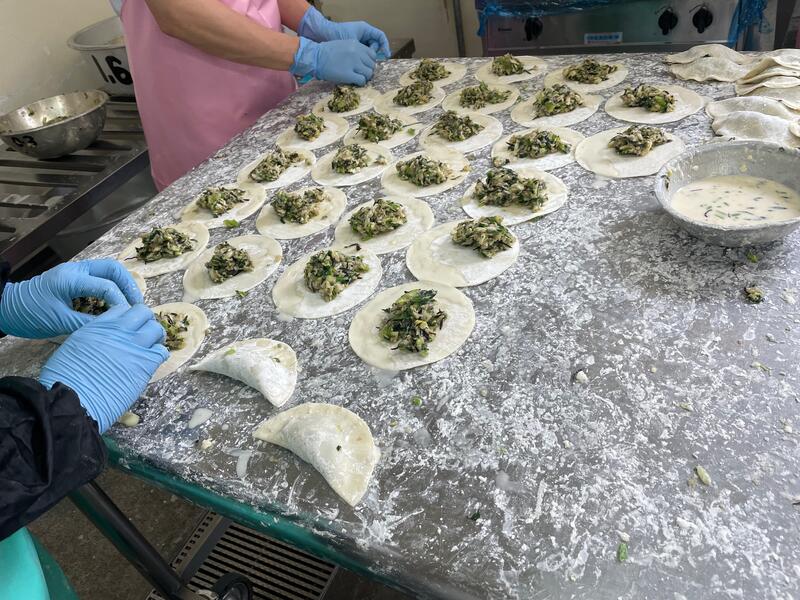 キムチご飯 小松菜ぎょうざ トックスープ 杏仁豆腐