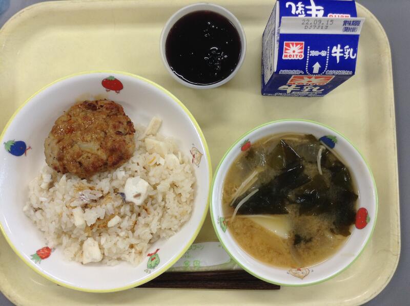 鯛めし 野菜ハンバーグ じゃがいもの味噌汁 ぶどうゼリー