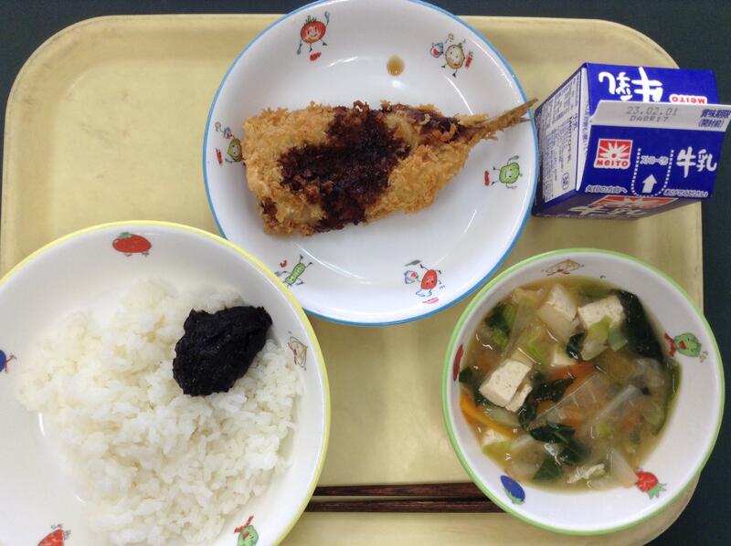 五色ごはん 擬製豆腐 栄養味噌汁 りんご