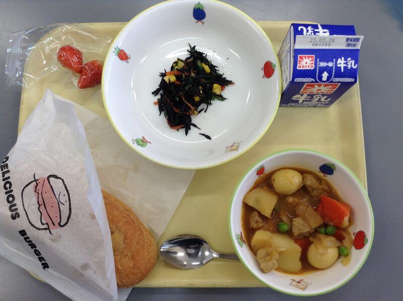 きな粉揚げパン ひじきのマリネ インド煮 いちご