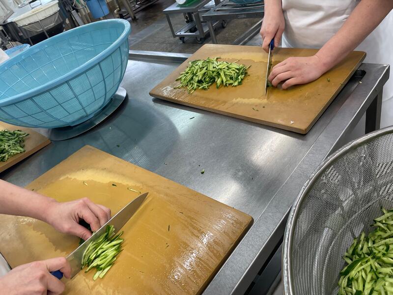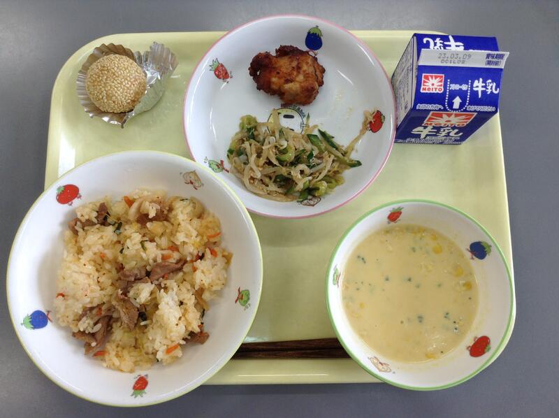 たこ飯 ちくわのゆかり揚げ ほうれん草のごま和え とん汁 牛乳寒天